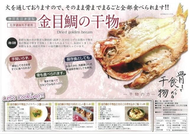 新鮮な海の幸が豊富な静岡県沼津市で匠が仕上げた良質の干物を独自の製法で骨まで美味しく食べられるように缶詰にしました。
